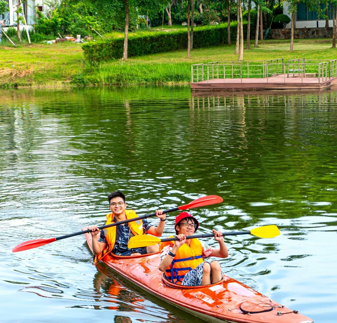 Chèo thuyền hoạt động vui chơi Resort Mộc Hồ